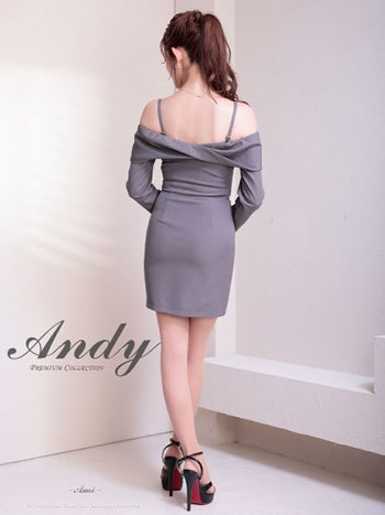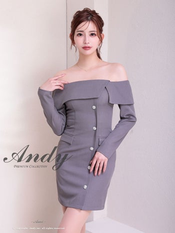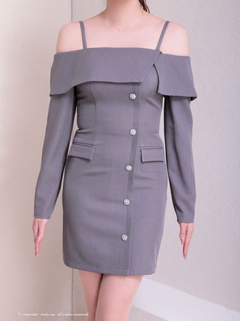 3. 【Andy/アンディ】長袖 肩あき 飾りポケット ビジューボタン オフショル ワンカラー タイトミニドレス(anon2922)