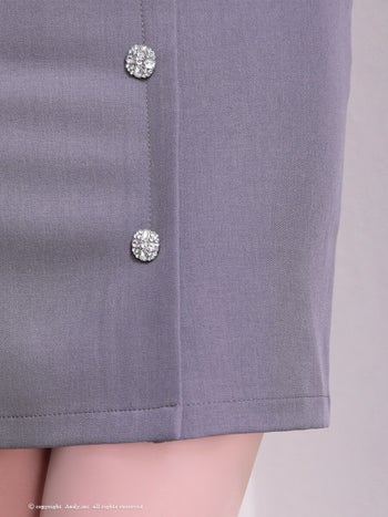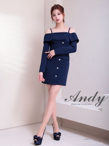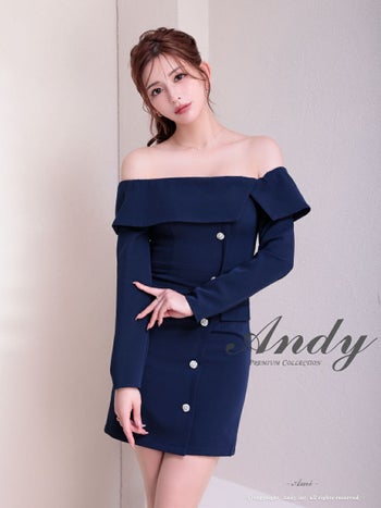 キャバドレス Andy アンディ 飾りポケット 肩あき 長袖 ビジューボタン オフショル ワンカラー タイトミニドレス