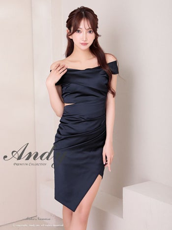 キャバドレス Andy アンディサテン オフショル ワンカラー アシンメトリー タイトミニドレス