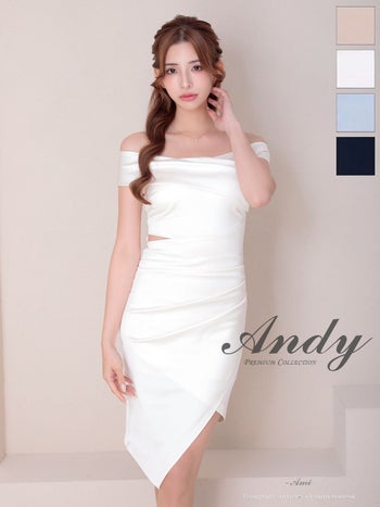 4. 【Andy/アンディ】サテン オフショル ワンカラー アシンメトリー タイトミニドレス(anon2929)