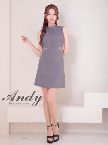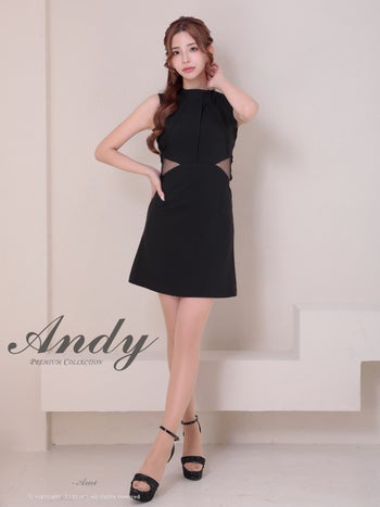 4. 【Andy/アンディ】ワンカラー 背中開き ハイネック ノースリーブ リボン くびれ透け フレアミニドレス(anon2937)