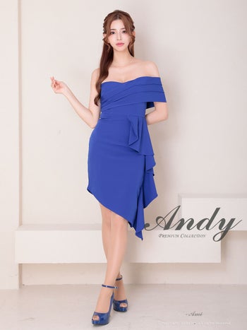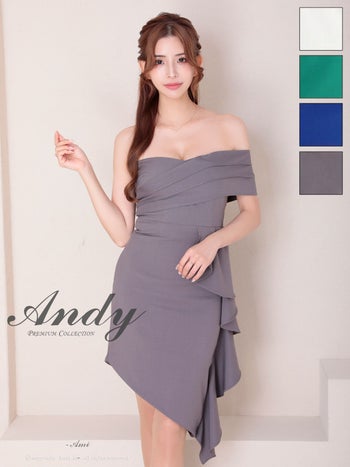 キャバドレス Andy アンディ ワンカラー ワンショルダー オフショル フリル アシンメトリー タック タイトミニドレス