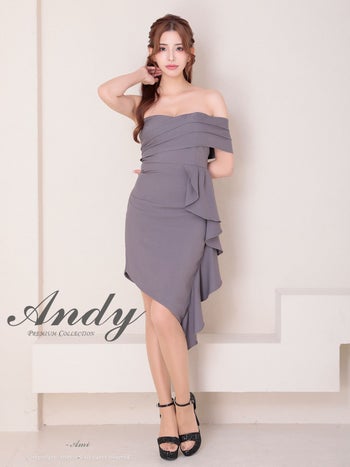 キャバドレス Andy アンディ フリル ワンカラー ワンショルダー オフショル アシンメトリー タック タイトミニドレス