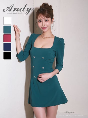 上品な女性を演出♡ 【Andy/アンディ】スクエアネック ボタン ワンカラー 袖あり フレアミニドレス(anon3000)