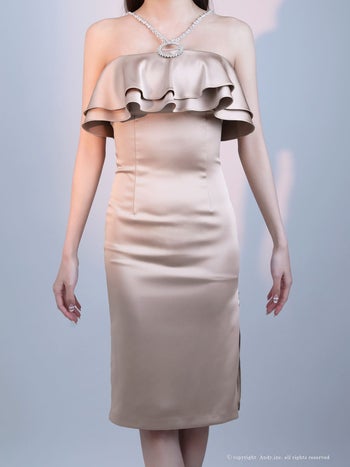 3. 【Andy/アンディ】ビジュー フリル スリット ホルターネック タイト 膝丈ドレス(anon3061)