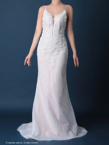 3. 【PREMIUM Andy/プレミアム アンディ】キャミソール チェック柄 スパンコール シースルー レースアップ フィッシュテール バースデー マーメイドロングドレス(anw007)