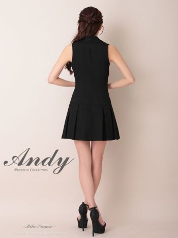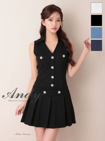 キャバドレス Andy アンディ Vネック 襟付き フロントボタン プリーツ シンプル ノースリーブ フレアミニドレス