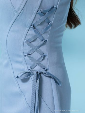 3. 【Andy/アンディ】レースアップ ベルトデザイン リボン ワンカラー ノースリーブ フレアミニドレス(anok2967)
