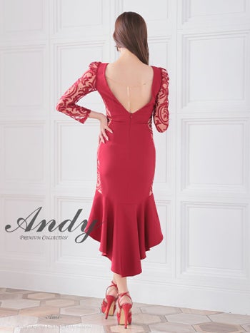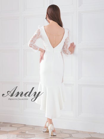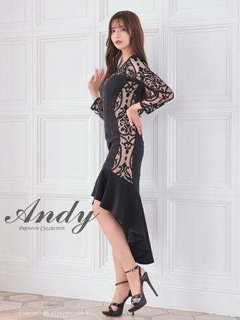 キャバドレス ミディアムドレス Andy アンディ テールカット ジップデザイン シアー マーメイド チェーン 長袖 膝丈ドレス