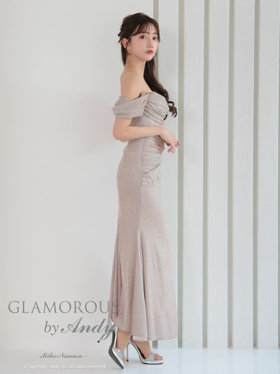 キャバドレス GLAMOROUS オフショルダー 半袖 ラメ スリット クロスデザイン タック ドレープ タイトロングドレス