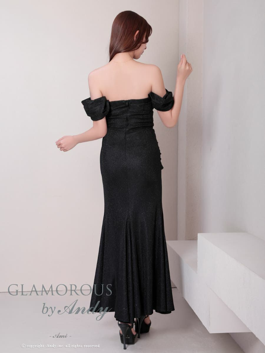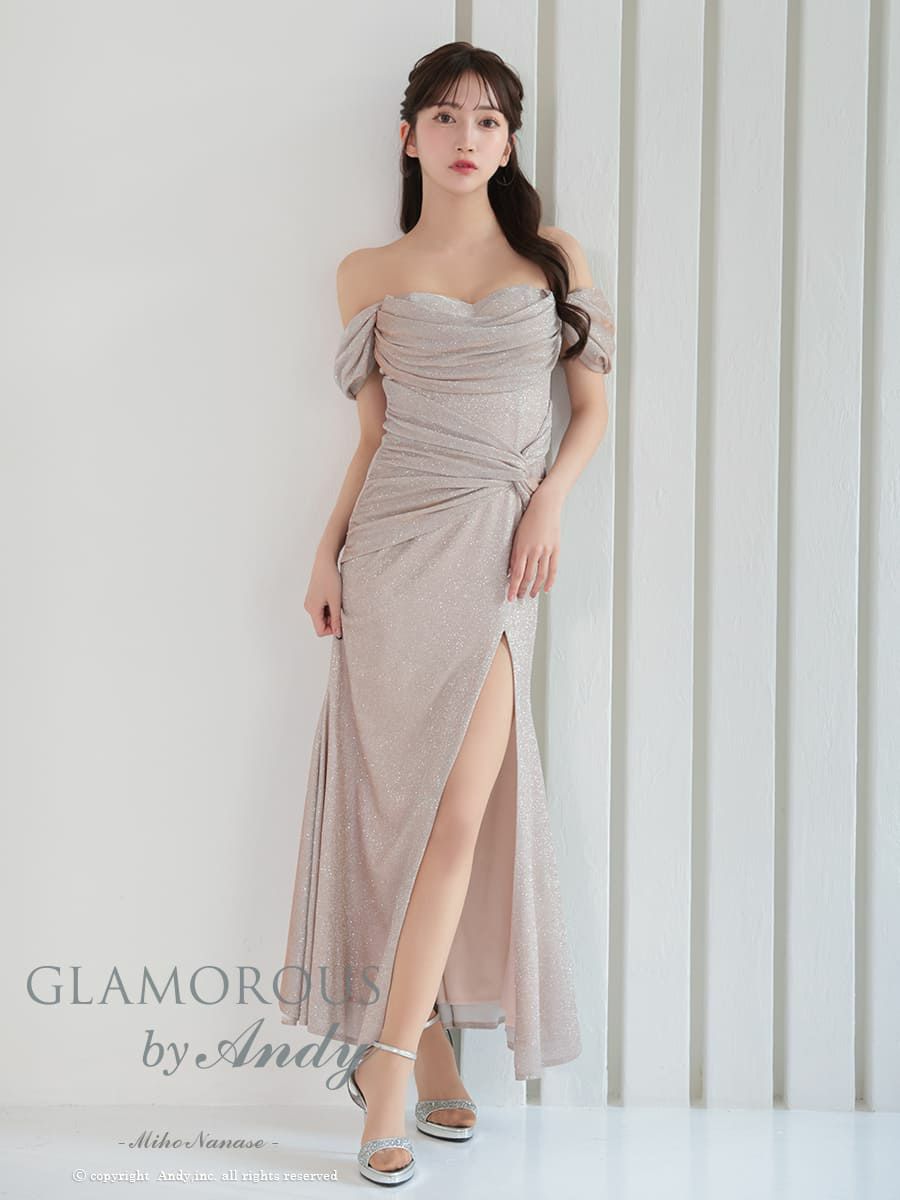 キャバドレス GLAMOROUS 半袖 オフショルダー ラメ スリット クロスデザイン タック ドレープ タイトロングドレス