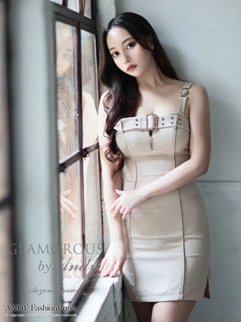 3. 【GLAMOROUS/グラマラス】ジップデザイン ベルト バックル スリット ワンカラー ノースリーブ タイトミニドレス(gmsv826)