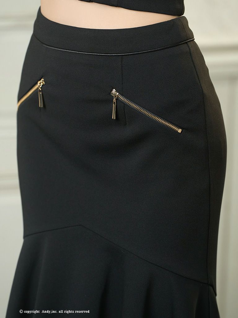 ノースリーブ ジップデザイン ワンカラー セットアップ テールカット 膝丈ドレスの詳細画像3