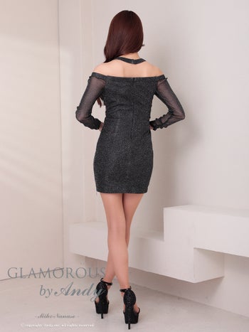 キャバドレス GLAMOROUS 肩あき ジップデザイン 長袖 バストカット ウエストカット ラメ シアー スリット タイトミニドレス