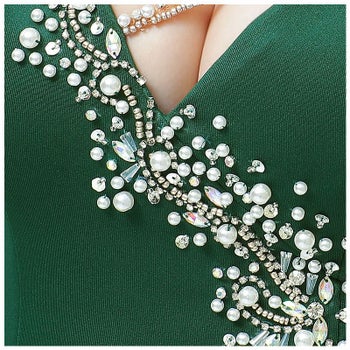セクシー サイドスリット ビジューパール アシンメトリー ラインビジュー タイトロングドレス