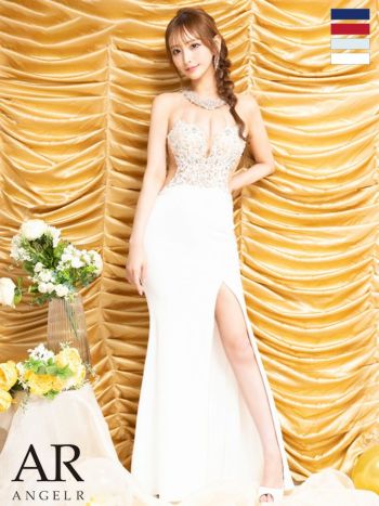 華やかな一着☆ 【Angel R/エンジェルアール】アッパーフラワーレース ホルターネック デコルテビジュー くびれ透け スリット セクシー オープンバスト タイトロングドレス (AR24344)