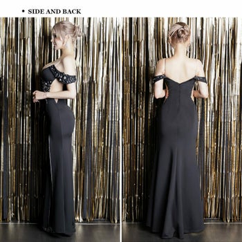 3. 【Angel R/エンジェルアール】オープンバスト 肩あき フラワーレース ビジュー メッシュ くびれ透け スリット セクシー タイトロングドレス (AR24847)
