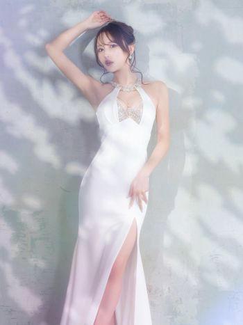 キャバドレス Angel R エンジェルアール レース フロントビジュー スリット セクシー バストカット ホルターネック タイトロングドレス