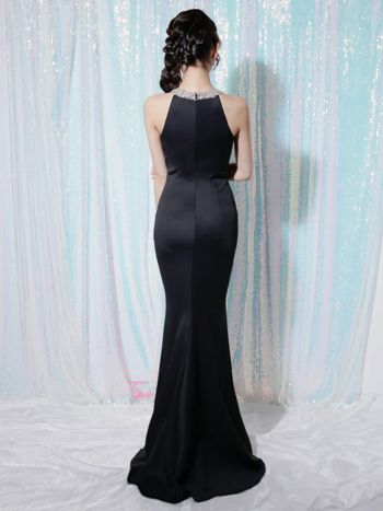 無敵な輝きを放つ♪ 【Angel R/エンジェルアール】レース フロントビジュー スリット セクシー バストカット ホルターネック タイトロングドレス (AR25222)