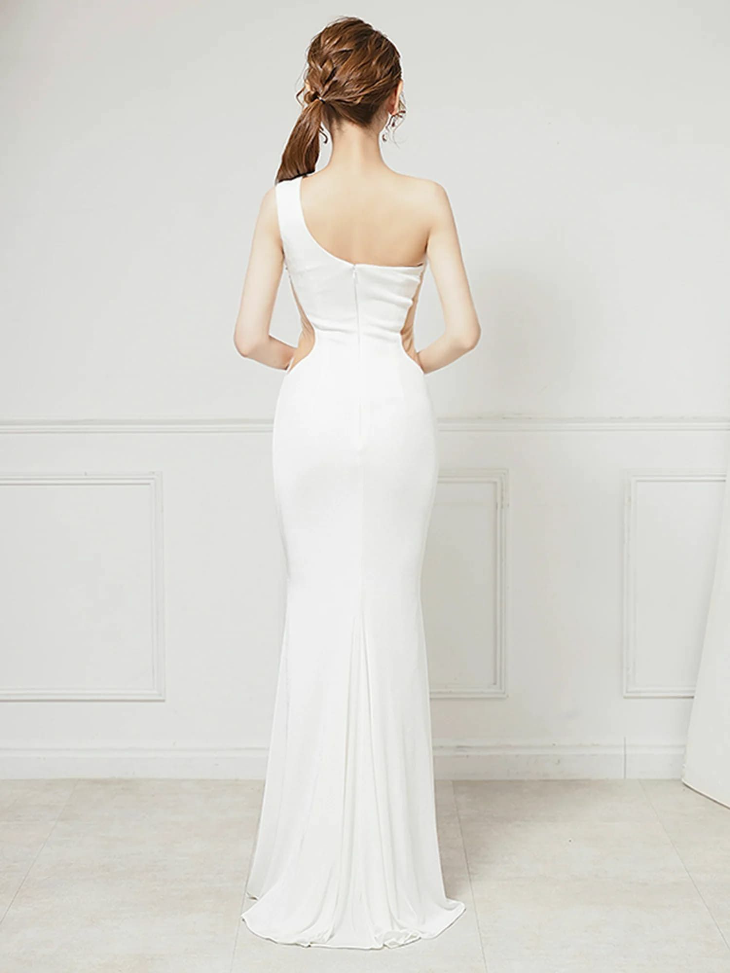 圧倒的な美しさを引き出す☆ 【Angel R/エンジェルアール】セクシー ワンショルダー バストカット ビジュー くびれ透け スリット タイトロングドレス (AR25232)