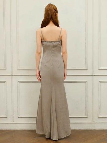 4. 【Angel R/エンジェルアール】キャミソール スリット ビジュー ラメ ビジュー フリル ラッフルデザイン ベアトップ タイトロングドレス (AR25246)