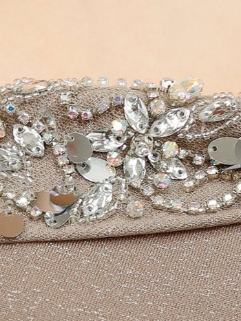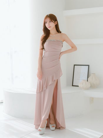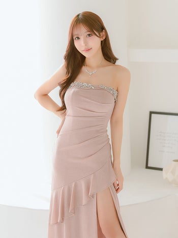 3. 【Angel R/エンジェルアール】ベアトップ キャミソール フリル ラッフルデザイン スリット ビジュー ラメ ビジュー タイトロングドレス (AR25246)