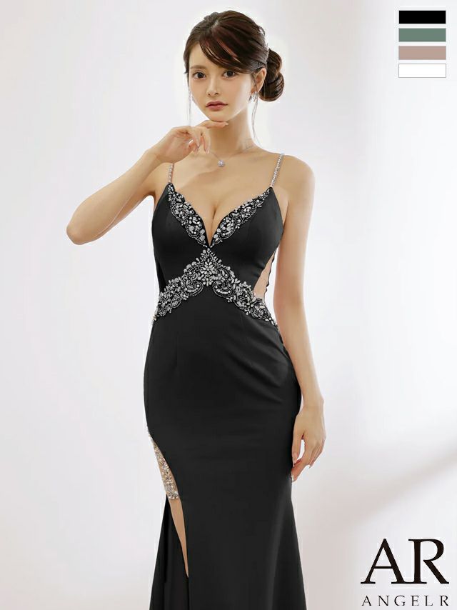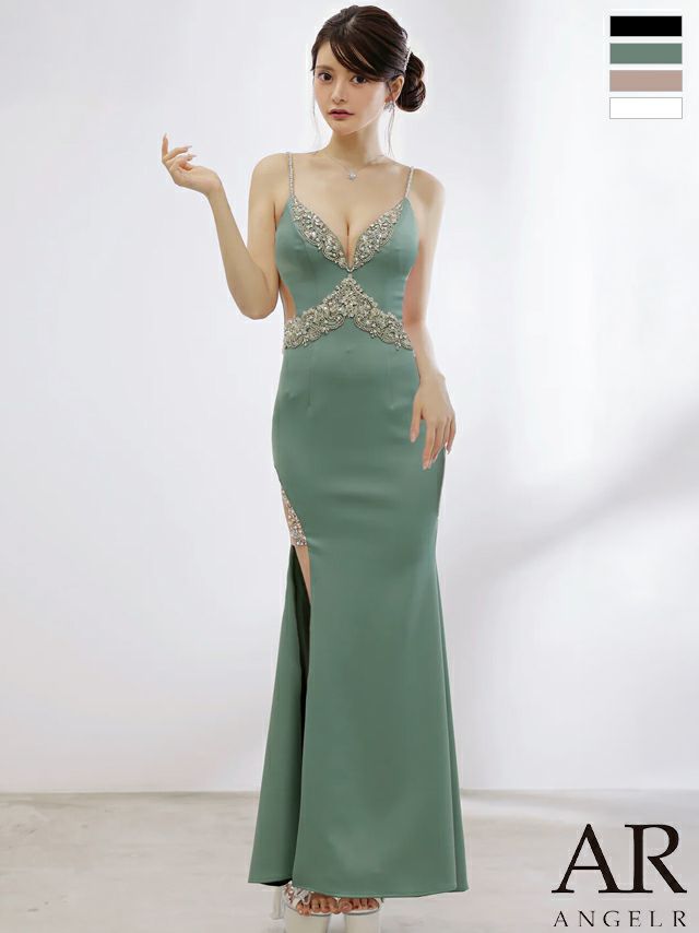 キャバドレス Angel R エンジェルアール キャミソール オープンバスト フロントビジュー くびれ透け スリット タイトロングドレス