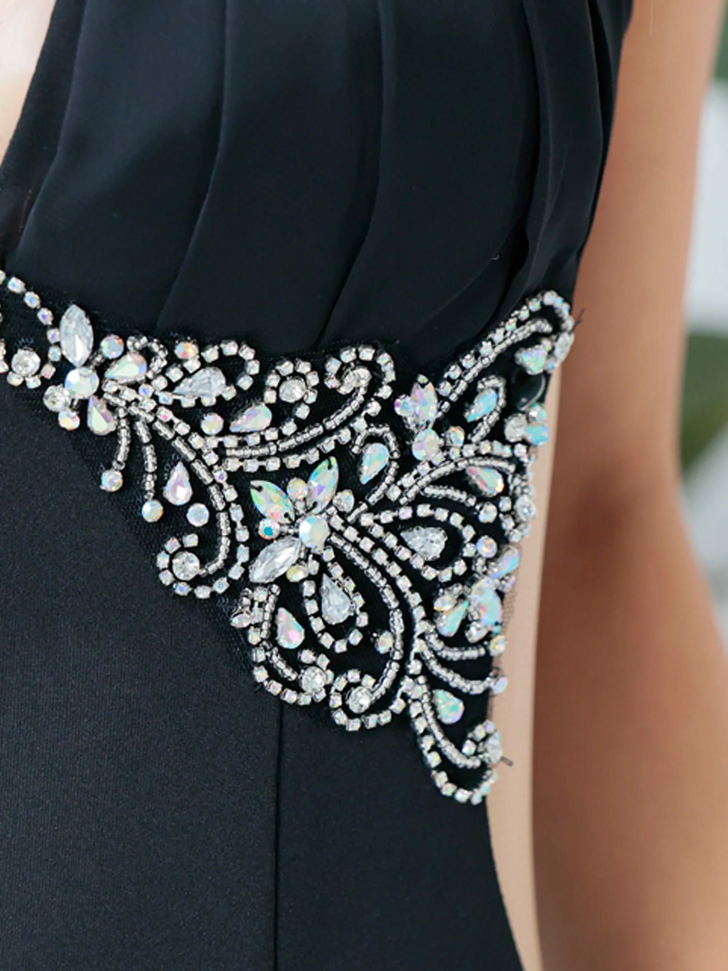 4. 【Angel R/エンジェルアール】セクシー バストカット ホルターネック くびれ透け ビジュー スリット タイトロングドレス (AR25310)