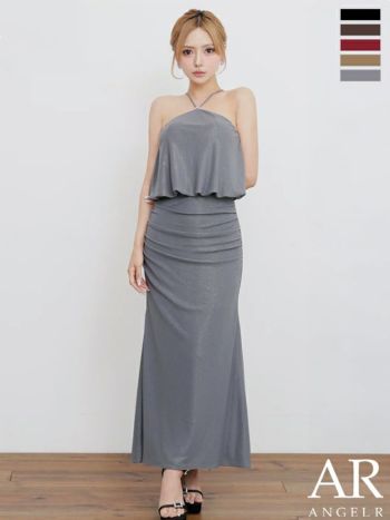 なめらかに広がるロングラインが美しい☆ 予約商品【10月中旬入荷予定】【Angel R/エンジェルアール】ラメ エレガント ホルターネック チャーム タイトロングドレス (AR25345)