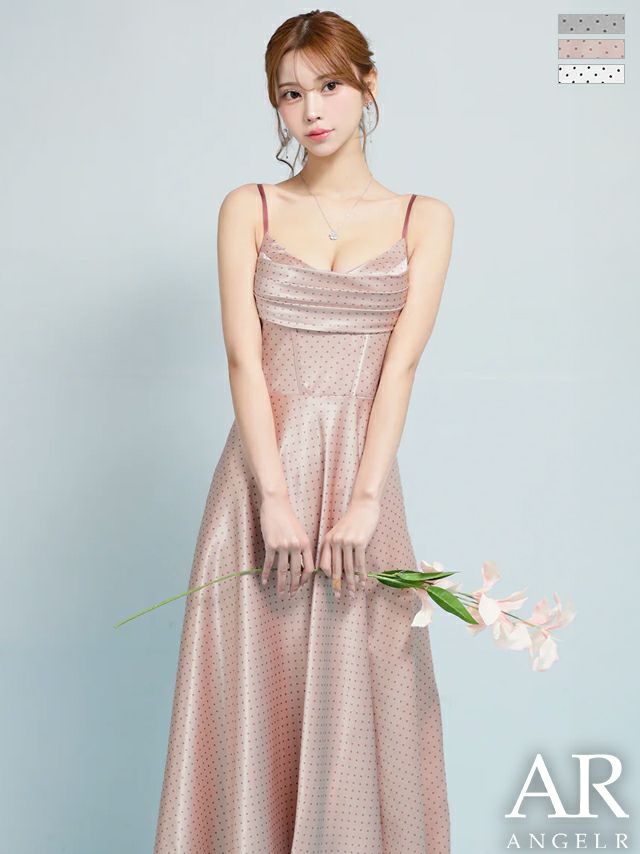 キャバドレス Angel R エンジェルアール キャミソール バストシャーリング ドット柄 Aラインロングドレス