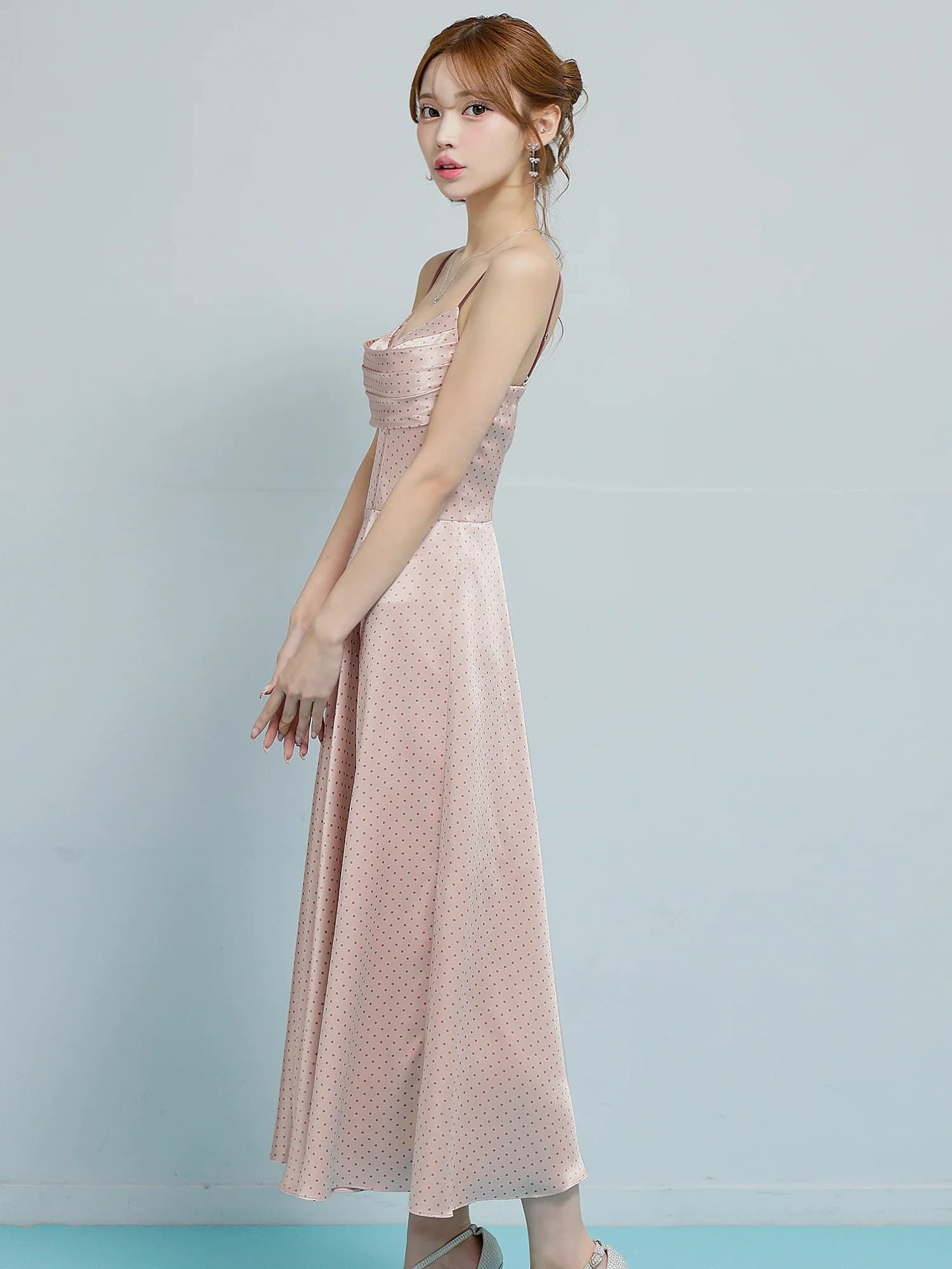 4. 【Angel R/エンジェルアール】キャミソール バストシャーリング ドット柄 Aラインロングドレス (AR26205)