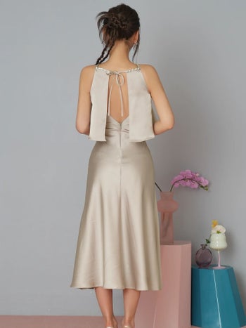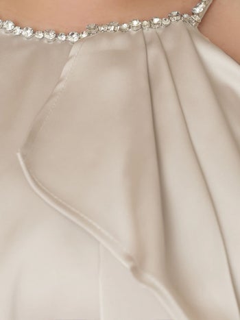 4. 予約商品【5月中旬入荷予定】【Angel R/エンジェルアール】ビジュー ホルターネック ドレープフリル リボン サテン フレアロングドレス(AR26832)