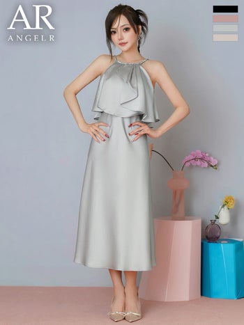 動きに合わせて優雅に揺れる♡ 予約商品【5月中旬入荷予定】【Angel R/エンジェルアール】ドレープフリル リボン サテン ビジュー ホルターネック フレアロングドレス(AR26832)