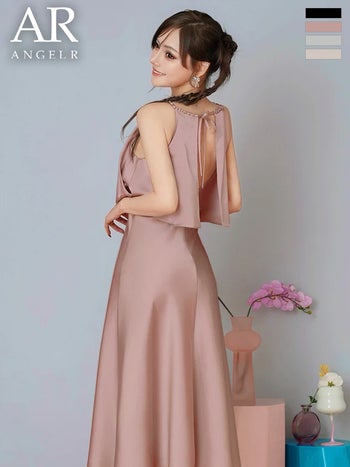3. 予約商品【5月中旬入荷予定】【Angel R/エンジェルアール】サテン ホルターネック ビジュー ドレープフリル リボン フレアロングドレス(AR26832)