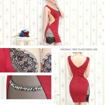 4. 【Angel R/エンジェルアール】セクシー フェミニンブラックレース サイドシースルー パーツ ワンカラー タイトミニドレス(AR20339)