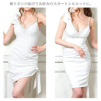裾リボンの結び方でお好みのシルエットに☆ 【Angel R/エンジェルアール】リボン アシンメトリー タイトミニドレス (AR21801)