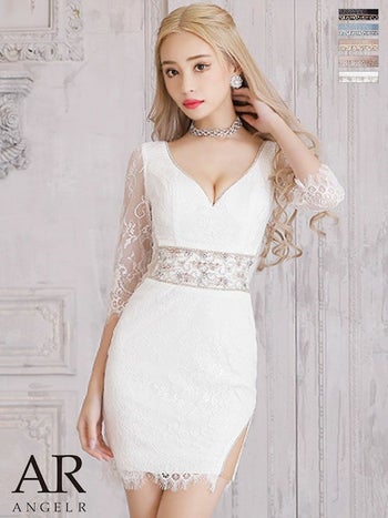 4. 【Angel R/エンジェルアール】リッチ フラワーレース セクシー ウエストビジュー 袖あり タイトミニドレス(AR22315)