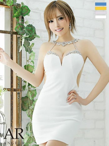 3. 【Angel R/エンジェルアール】フェミニン デコルテバックメッシュ セクシー ビジュー タイトミニドレス (AR22325)