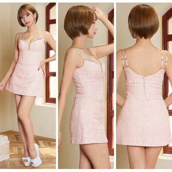 深めのバストカットがSEXY☆ 【Angel R/エンジェルアール】キャミソール ビジュー ツイード セットアップ フレアミニドレス (AR2236)