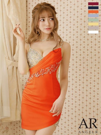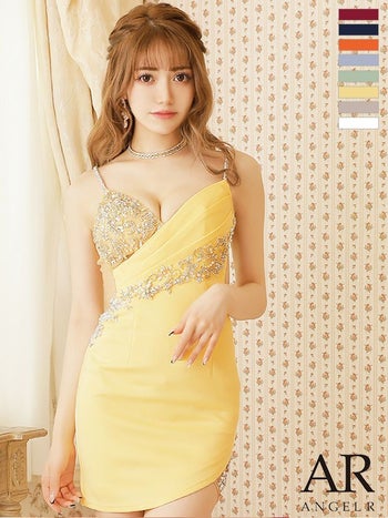 4. 【Angel R/エンジェルアール】キャミソール バストウエスト アシンメトリータック シースルー ビジュー ワンカラー タイトミニドレス (AR22824)