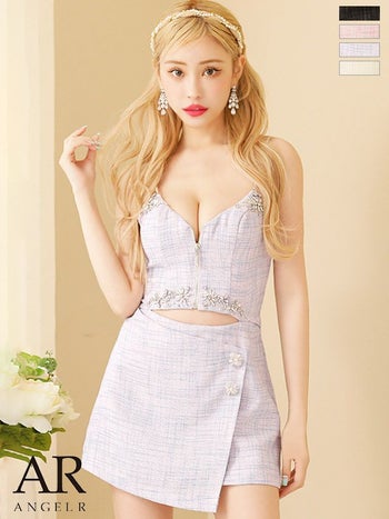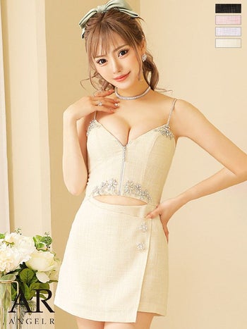 ラップスカートが乙女心くすぐる☆ 【Angel R/エンジェルアール】キャミソール ツイードファスナーウエストカットタイトラップスカート フレアミニドレス (AR23338)