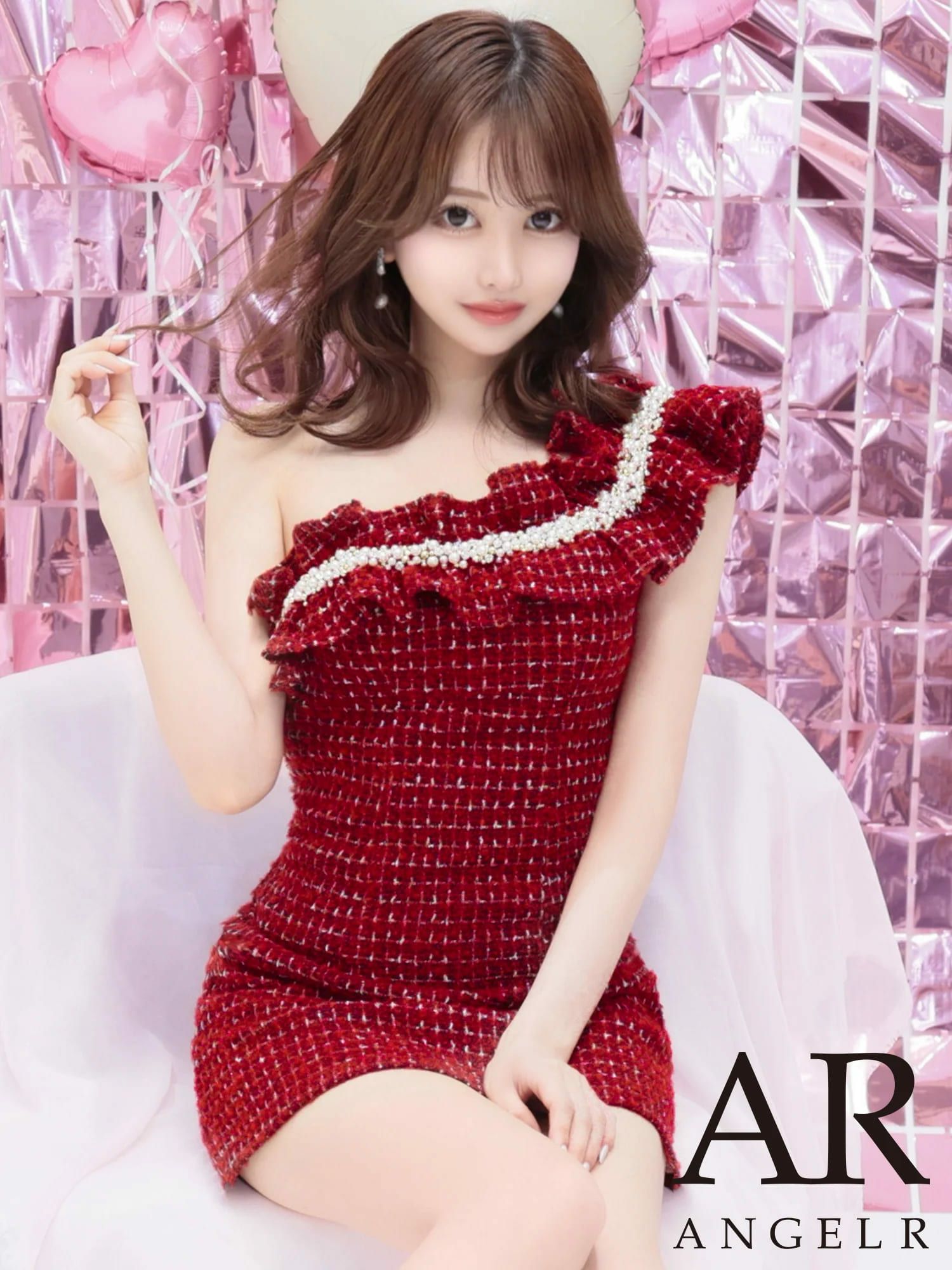 XSあり!CUTEなデザイン☆ 【Angel R/エンジェルアール】チェック柄 ツイード パール フリル ワンショルダー ガーリー フレアミニドレス (AR24247)