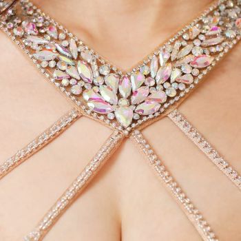 3. 【Angel R/エンジェルアール】バックオープンビジュー デコルテ ビジューラメ アメリカンスリーブ タイトミニドレス (AR24303)