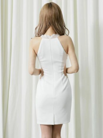 4. 予約商品【1月下旬入荷予定】【Angel R/エンジェルアール】バストカット ホルターネック くびれ透け フラワー レース フリル ビジュー フェミニン タイトミニドレス (AR25225)