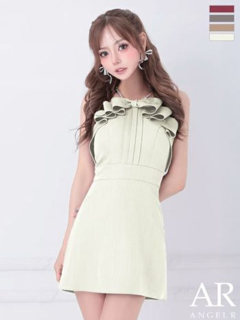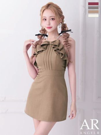 キャバドレス Angel R エンジェルアール パールショルダー フリルリボン キャミソール ガーリー フレアミニドレス
