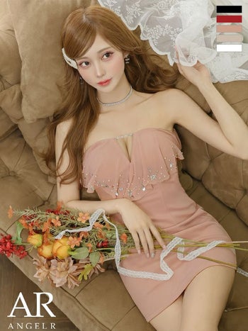 キャバドレス Angel R エンジェルアール バストフリル Vカット ビジュー フェミニン 2way ベアトップ キャミソール タイトミニドレス