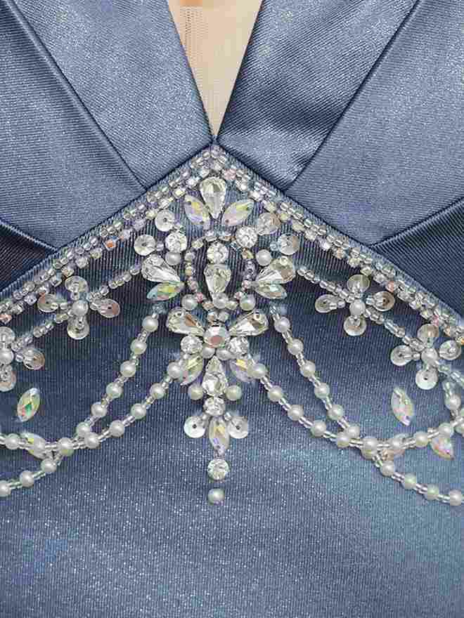 3. 【Angel R/エンジェルアール】バストカット パールチェーン ビジュー タック サテン フェミニン キャミソール ショルダーリボン タイトミニドレス (AR25251)