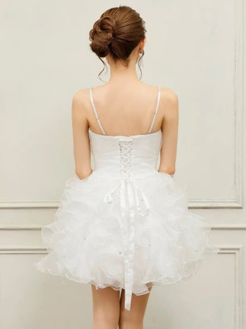 ハートカットで胸元を美しく魅せる♪ 予約商品【1月下旬入荷予定】【Angel R/エンジェルアール】フリル バースデー ベアトップス ハートカット キャミソール ビジュー パールチェーン ウエストマーク フレアミニドレス (AR25340)