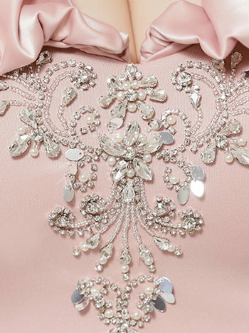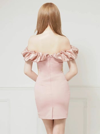 4. 【Angel R/エンジェルアール】肩あき くびれ透け メッシュ サテン ビジュー フェミニン オフショルダー タイトミニドレス (AR25840)