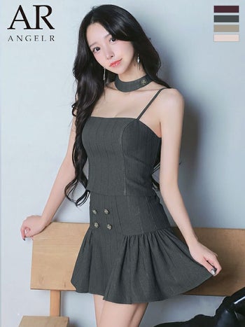 キャバドレス Angel R エンジェルアール チョーカーデザイン ダブルボタン セットアップ プリーツ ホルターネック フレアミニドレス